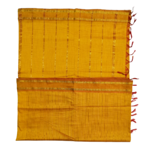 Arni Checks Premium Cotton Silk Saree with Zari Border – Dark Mustard