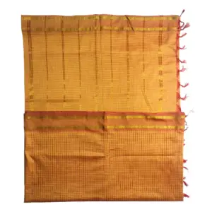Be the first to review “Arni Checks Premium Cotton Silk Saree with Zari Border – Mustard Yellow”